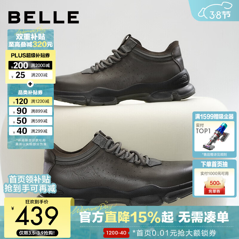 百丽厚底增高健步鞋男春新抓纹牛皮户外休闲运动鞋A2215CM5预售 灰色 41 (255mm)