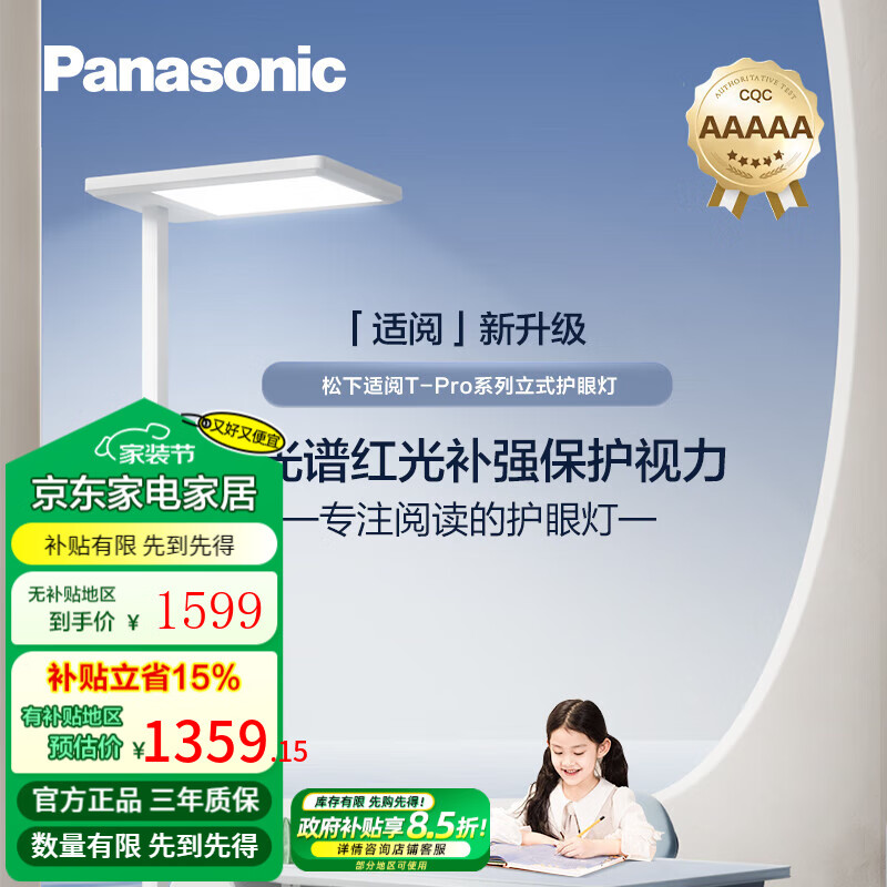 松下(Panasonic)立式智能护眼台灯学习灯全光谱类太阳光儿童书房护眼落地大路灯 【适阅T-Pro】100W红光护眼大路灯 HHTZ5003