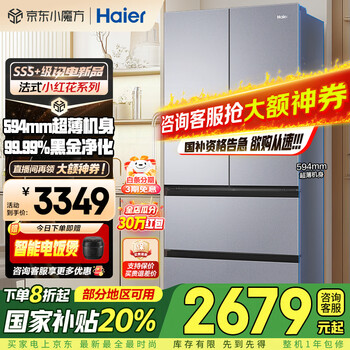 海尔(Haier)冰箱488升超薄60cm内法式多门四开双对开门可嵌入小红花套系变频一级能效风冷无霜大容量国家补贴 488L+594mm超薄+黑金净化+母婴三挡变温