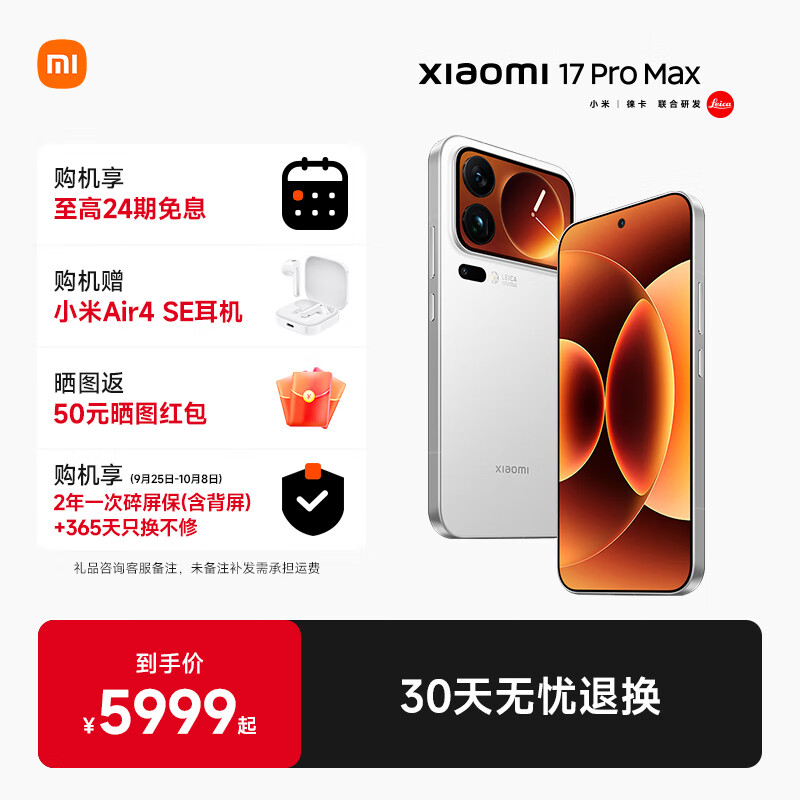 小米(MI)17Pro Max 手机新品5G旗舰背屏 白色 12GB+512GB 官方标配