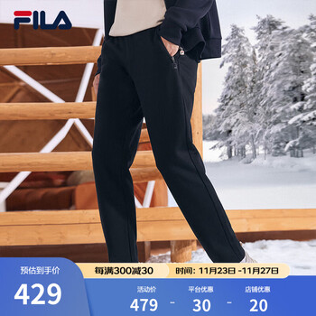 斐乐(FILA) 官方男子针织长裤冬季新款加绒休闲商务通勤休闲裤 正黑色-BK 180/88A/XL