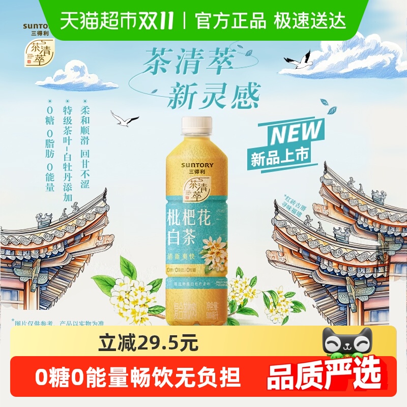 三得利茶清萃枇杷花白茶无糖500ml*15瓶有茶香无涩感 清爽滋味