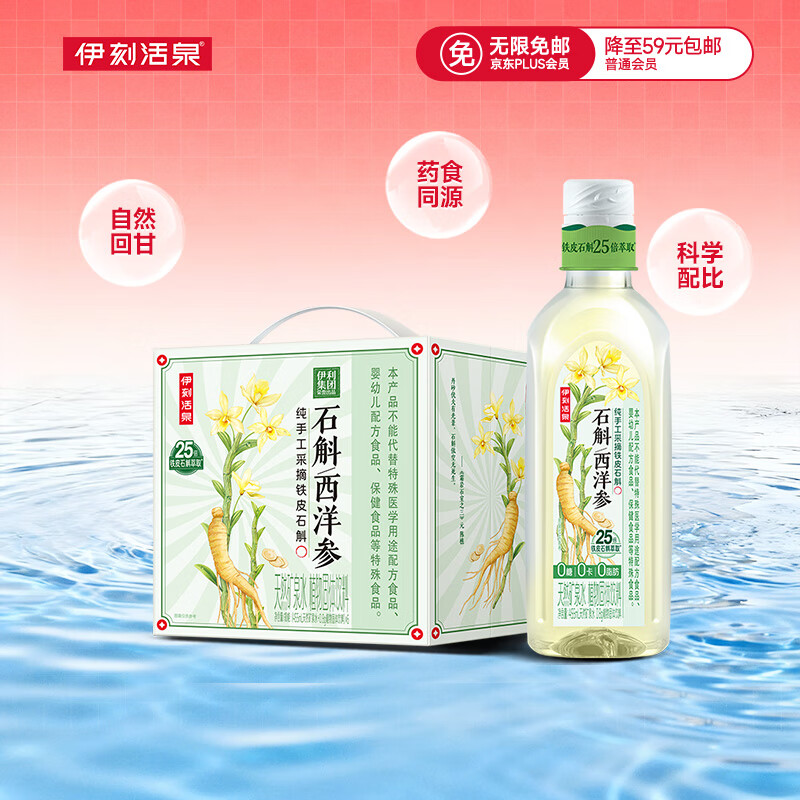 伊利伊刻活泉热门商品石斛西洋参养生水455ml6瓶礼盒装0糖0卡滋阴清热