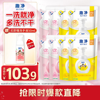 狮王(Lion)趣净泡沫抑菌洗手液(天然柠檬香)200ml袋*4+爽肤200ml*4 家庭装