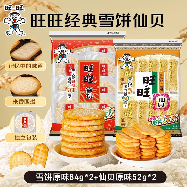 旺旺仙贝雪饼组合 年节囤货膨化米国零食解馋零食 原味雪饼84g*2+原味仙贝52g*2