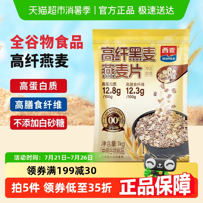 西麦高纤黑麦燕麦片1000g*1袋即食营养早餐饱腹冲饮麦片