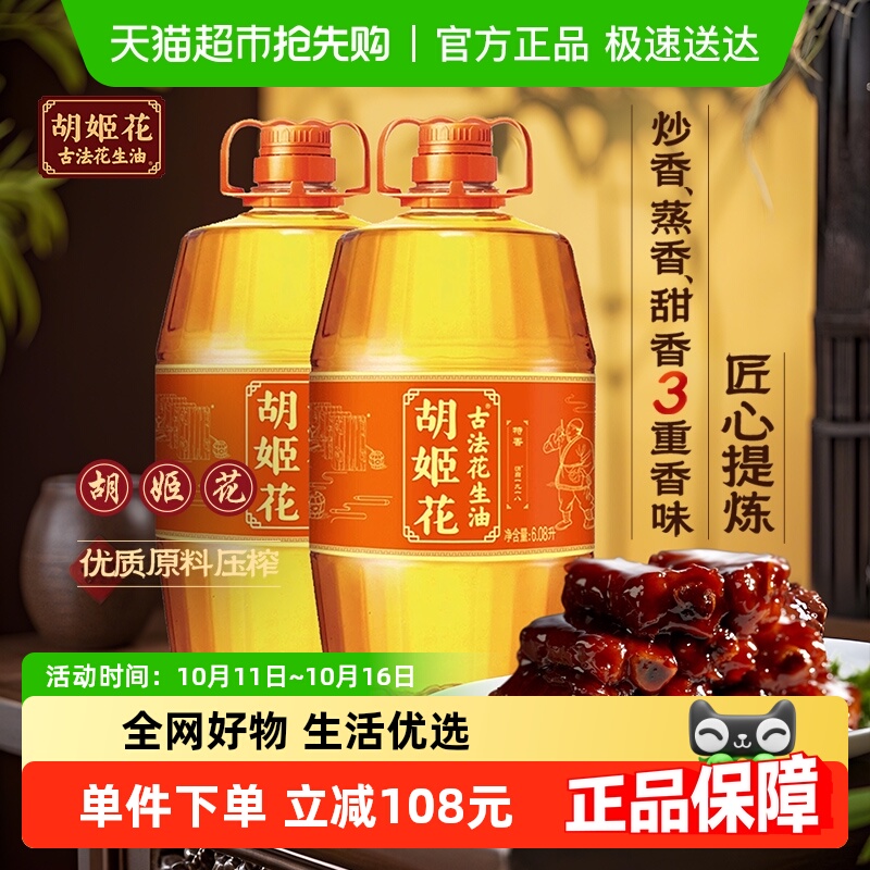 胡姬花古法花生油6.08L*2桶食用油压榨 大桶装