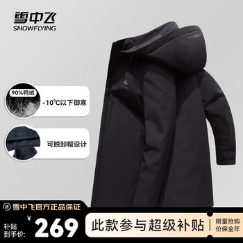 雪中飞【夹克羽绒服】秋冬经典时尚休闲百搭潮流男中长款有型羽绒服 黑色 XL 180