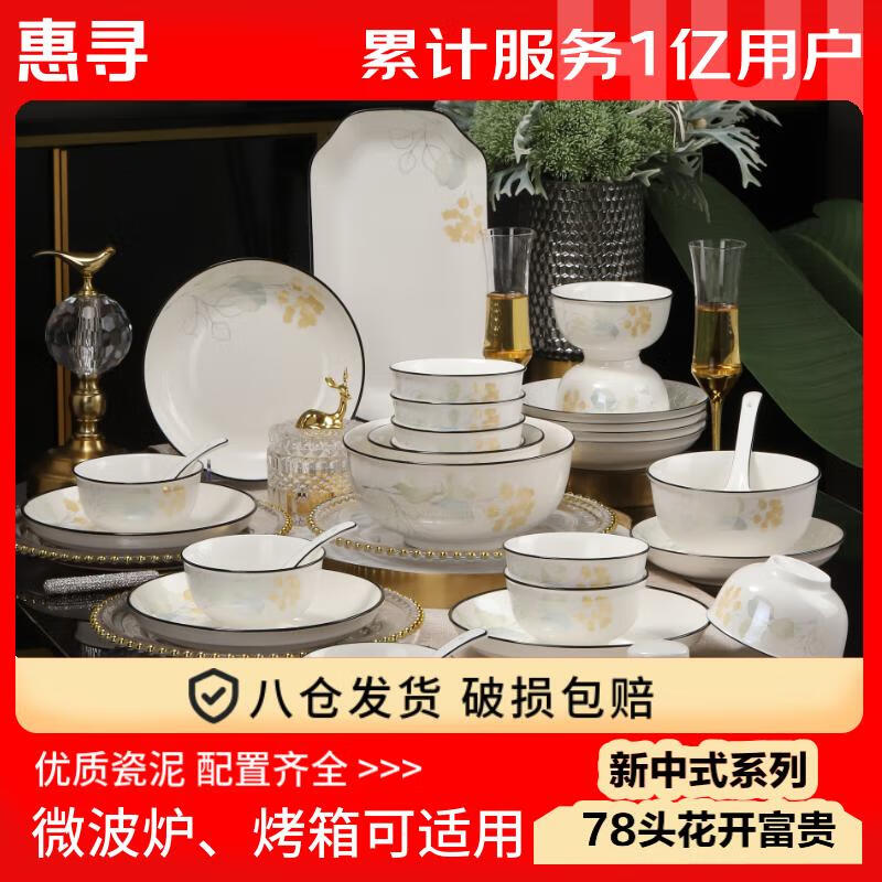 惠寻 餐具套装整套 景德镇家用陶瓷碗碟套装78头花开富贵