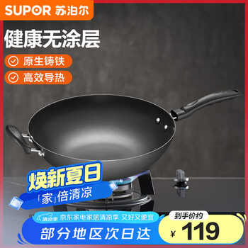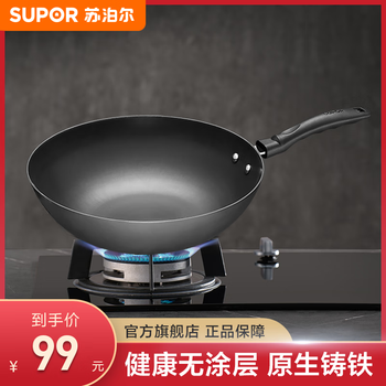 苏泊尔(SUPOR)无涂层铸铁锅炒锅 电磁炉燃气灶通用 炒菜锅平底家用生铁少油烟 直径 32cm