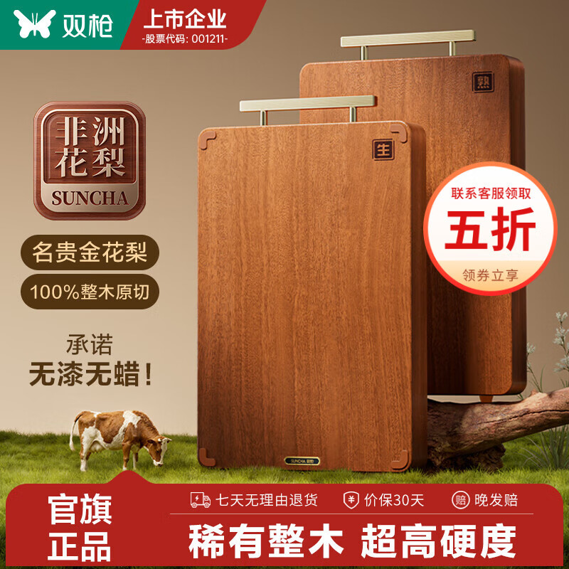 双枪整木黑标非洲花梨木切菜板实木菜板防霉抗菌家用食品级案板砧板 【黑标加厚】40*28*2.5cm(2-4人使用)