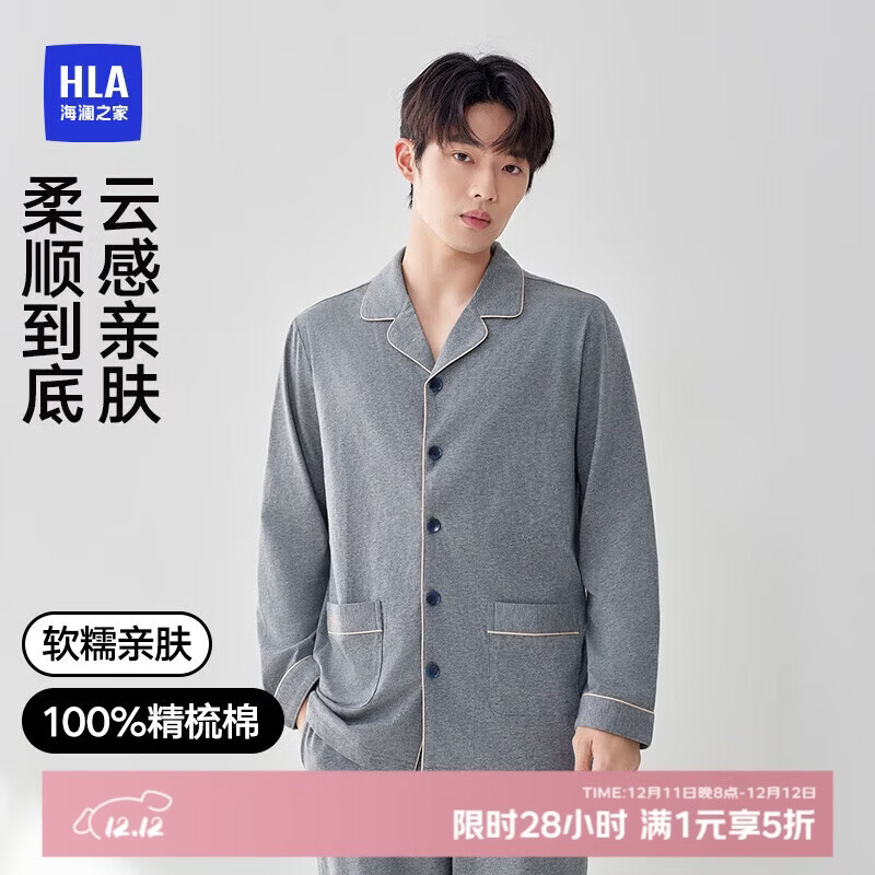 海澜之家男士睡衣男四季通用翻领开衫纯棉100%棉可外穿长袖长裤家居服套装