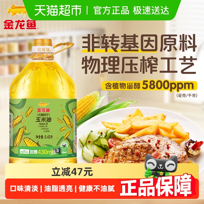 【加量不加价】金龙鱼不油腻轻年非转基因玉米油5.43L/桶 食用油