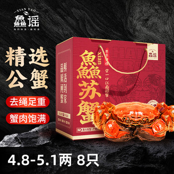 【活蟹】鱻谣 大闸蟹鲜活螃蟹 全公4.8-5.1两 8只装 生鲜螃蟹礼盒 源头直发包邮