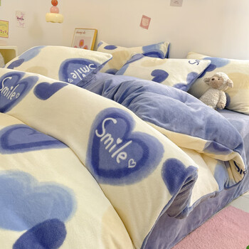 ÐùÀ¶Ê˼Ӻñ¹ö±ßÅ£ÄÌÈÞÇﶬ±£Å¯ËļþÌ× ´²óÒÅ£ÄÌÈÞ¶¬¼¾¼ÓÃÜÐÍÈÞÌ×¼þ À¶É«ÐÄÇé-lm ´²µ¥¿î1.5Ã×´²(±»Ì×200*230cm)