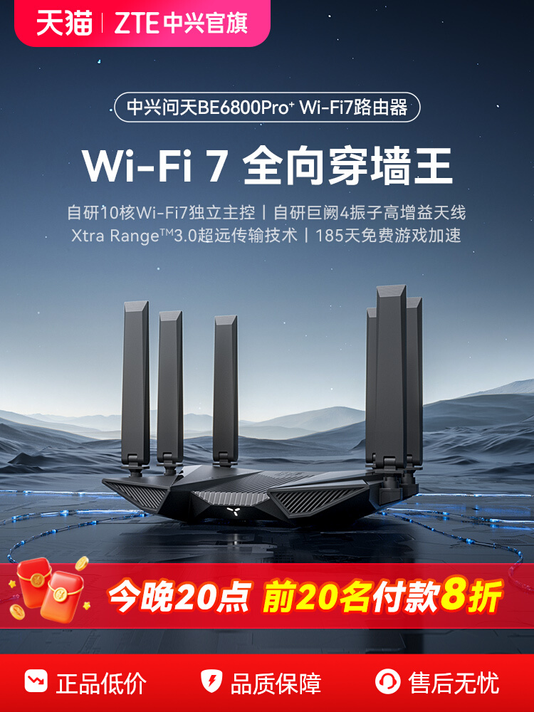 ZTE中兴问天路由器BE6800Pro+双2.5G网口WiFi7千兆双频路由器全屋大户型子母路由高速穿墙游戏电竞mesh组网