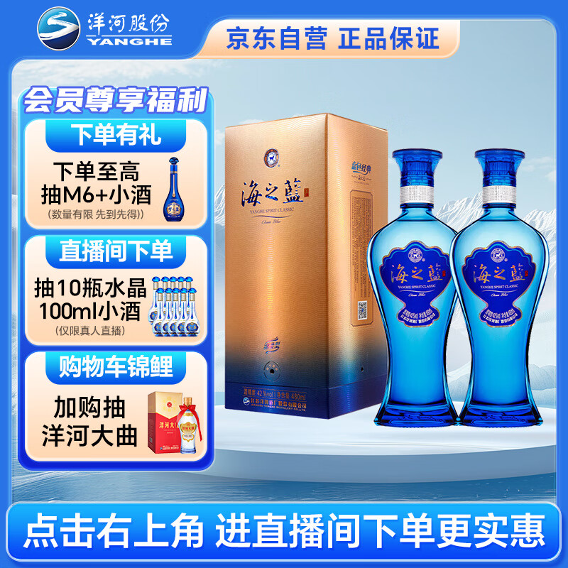 洋河蓝色经典 海之蓝 42度 480ml 双瓶装 绵柔浓香型白酒