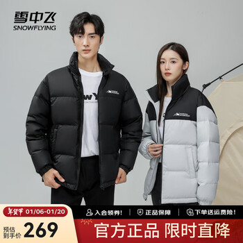 雪中飞2024新款百搭时尚休闲斜插式口袋男女同款短款立领羽绒服 黑色 L 175/92A