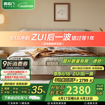 喜临门真皮双人床主卧奶油风极简家具实木脚排骨架床国家补贴绵绵[床架] 乳白+光年plus3.0床垫 1.8*2米