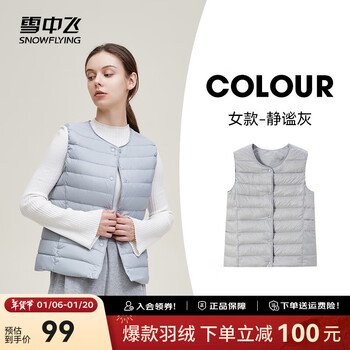 雪中飞经典新款基础舒适轻薄羽绒便捷短款保暖羽绒小马甲轻盈便携舒适 静谧灰|8210-女 L 170/92A