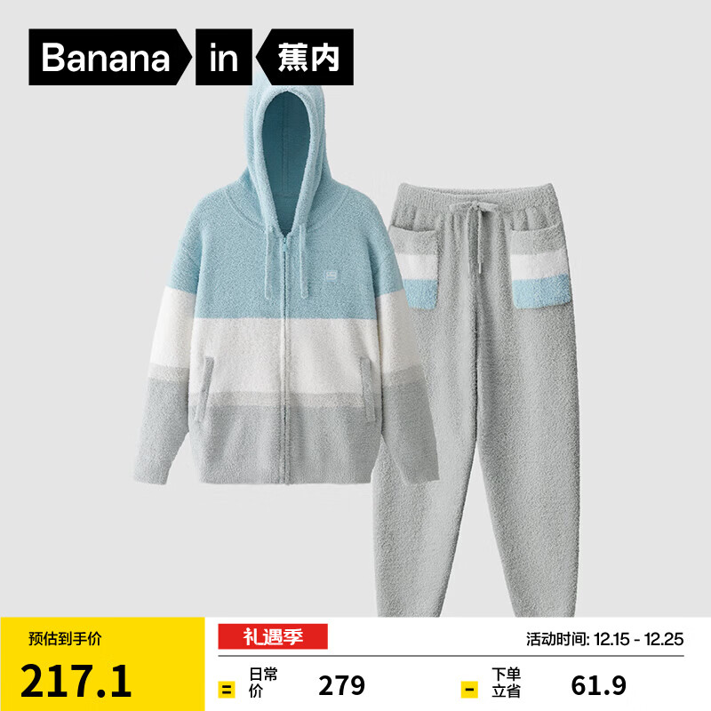 蕉内绒绒5系情侣睡衣男女士加绒加厚拼色家居服套装连帽开衫款秋冬季 【女士开衫】博灰拼色 M