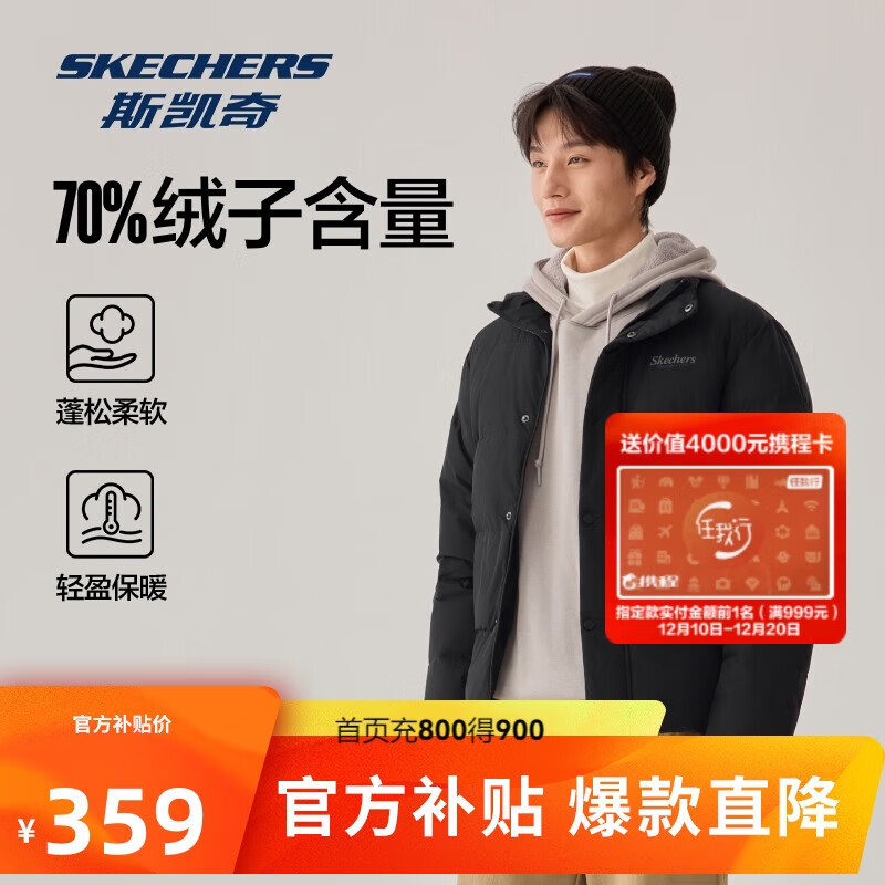 斯凯奇男女同款防污防油防沾水冬季保暖立领羽绒服