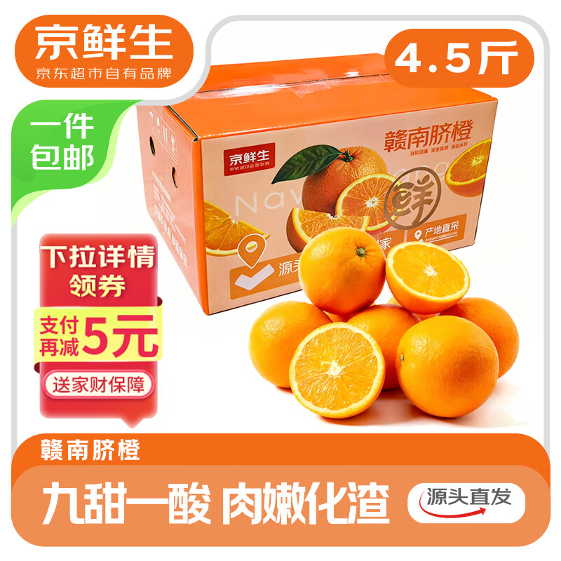 京鲜生 江西赣南脐橙 净重4.5斤 单果150g+ 源头直发包邮