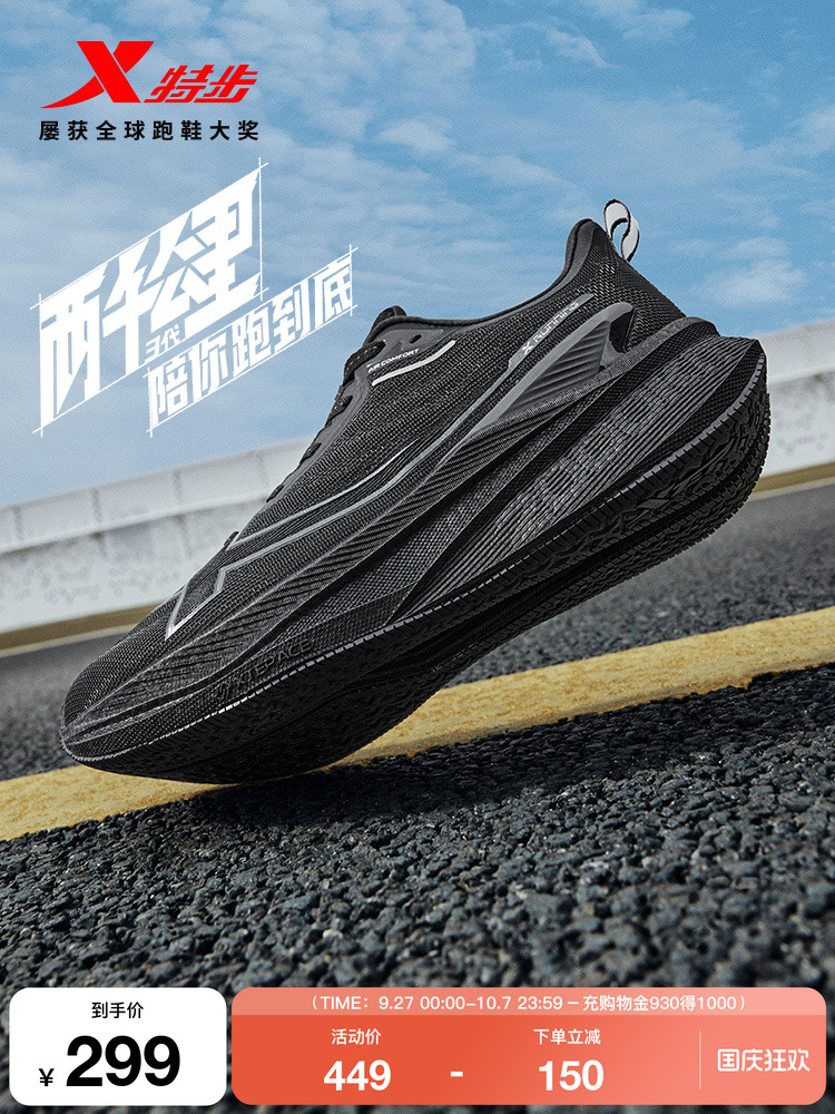特步两千公里三代丨耐磨轻质跑步鞋男鞋秋季网面跑鞋竞速女运动鞋