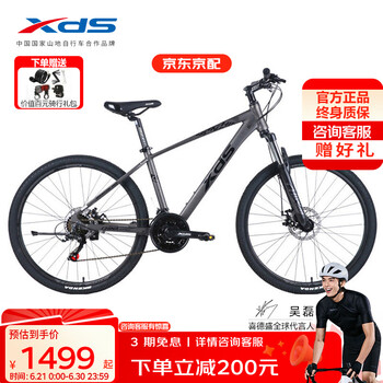 喜德盛山地儿童自行车中国风男女学生变速车21速碟刹单车 深灰黑26*16寸