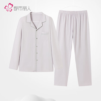 都市丽人睡衣男套装秋季长袖薄款纯色棉质开衫女士内衣家居服4H3101