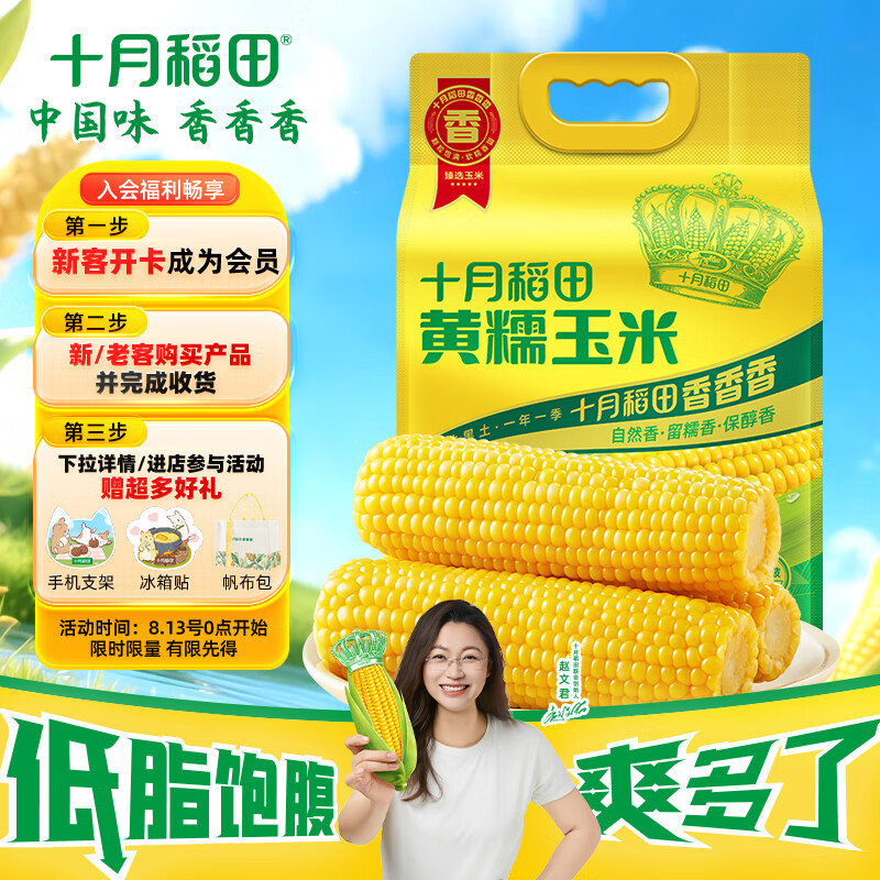 十月稻田 黄糯玉米 3.52斤(220g*8根) 东北甜黏玉米棒 早餐苞米 真空包装