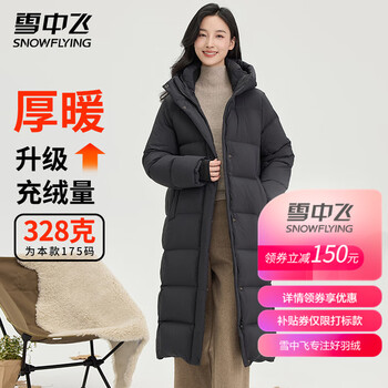 雪中飞哈尔滨羽绒服极寒外套女冬季过膝长款保暖连帽纯色女士东北羽绒服 宝石黑 L (165)