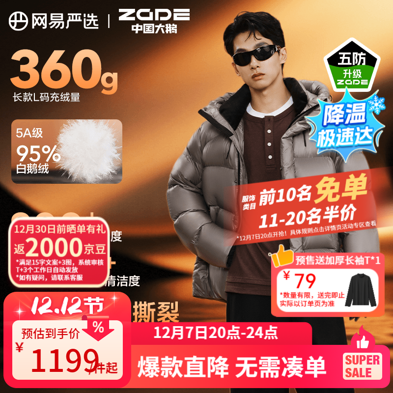 森马[轻松羽绒系列]三防羽绒服男冬季情侣纯色外套上衣 [25升级款]黑色(灰鸭绒) L