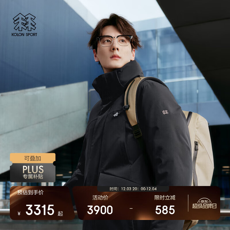 KOLON SPORT可隆羽绒衣防水防风透湿男士中量毛领连帽羽绒服