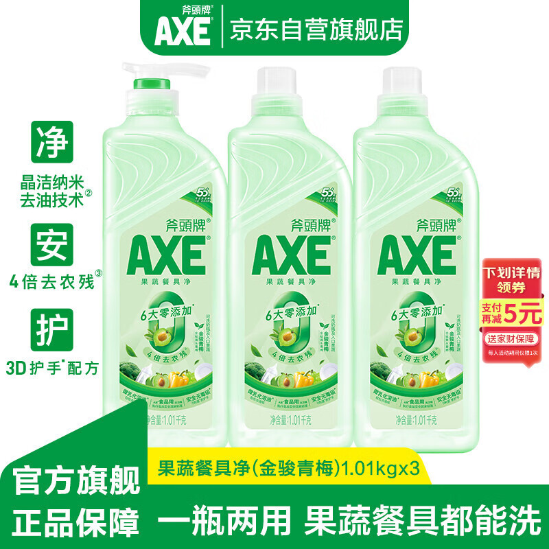 斧头金骏青梅果蔬餐具净洗洁精1.01kg*3(泵+补补)6大零添加