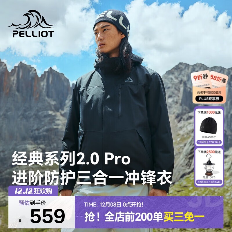 伯希和(Pelliot)【山野经典2.0Pro】冲锋衣三合一男女秋冬保暖外套115301098黑L