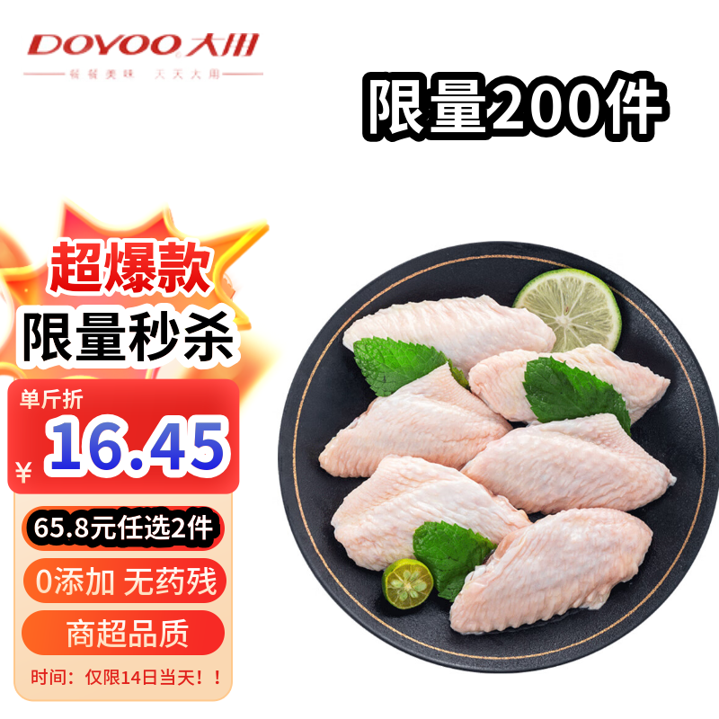 大用单冻鸡翅中 2斤 冷冻鸡翅膀烤鸡翅炸鸡翅鸡肉 卤鸡翅中 清真食品