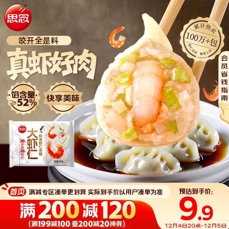 思念大虾仁鲜美虾仁水饺400g20只 虾饺早餐食品速食食品饺子蒸饺煎饺