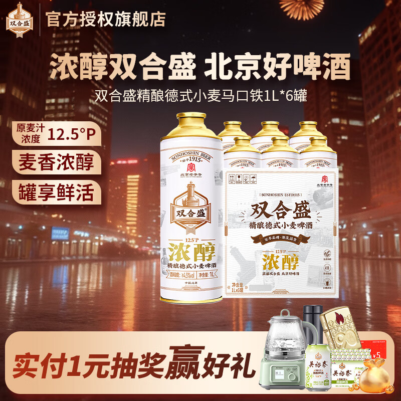 双合盛12.5°浓醇精酿德式小麦啤酒 北京百年老字号 马口铁1L*6罐