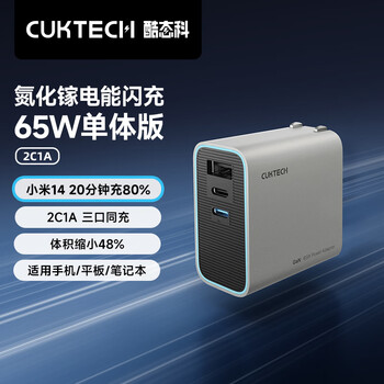 CUKTECH酷态科 氮化镓 65W充电器 三口USBType-C快充充电头 适用苹果16/15/小米/华为/Macbook/笔记本电脑 【65W氮化镓】2C1A灰色单体小巧便携
