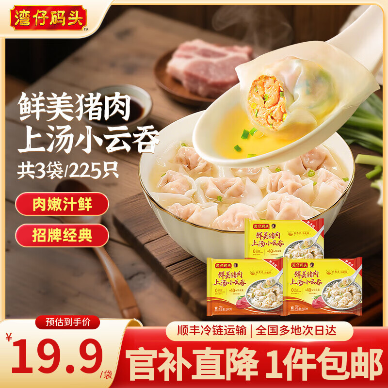 湾仔码头 上汤小云吞 早餐速食 生鲜食品 [热销爆款]鲜美猪肉云吞600g*3袋