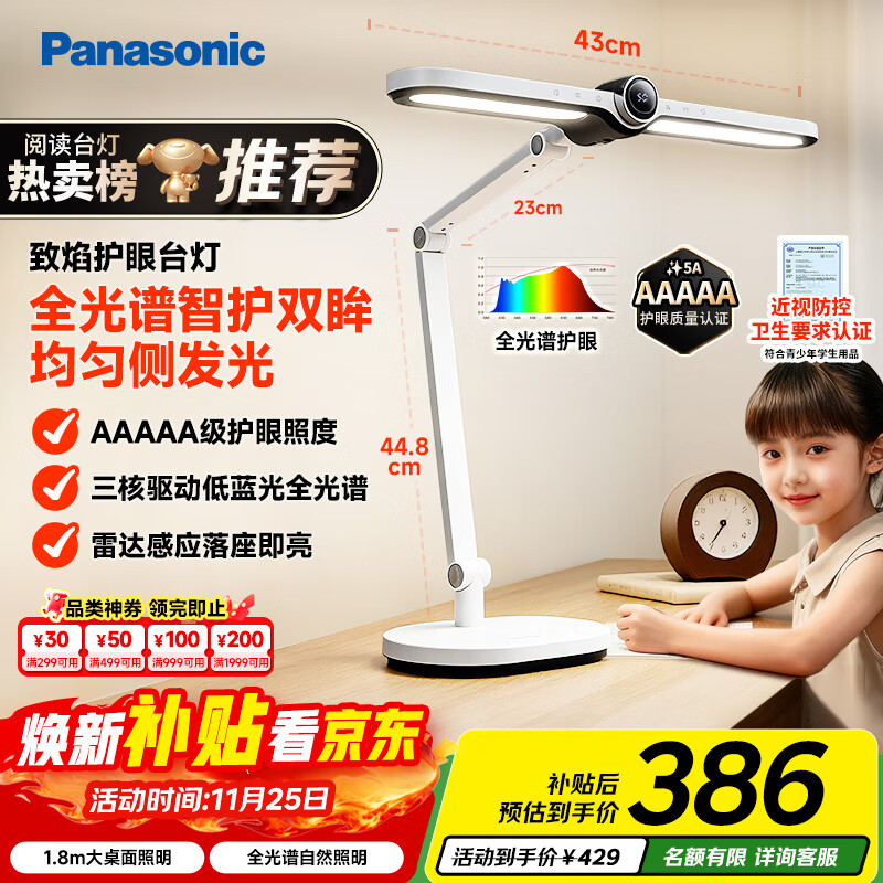 ËÉÏ£¨Panasonic£©Ì¨µÆ AAAAA¼¶Ì¨µÆÑ§ÉúѧϰÔĶÁÈ«¹âÆ×¼ÒÓû¤ÑŲ̂µÆÖÇÄܸÐÓ¦µÆÖÂÑæ