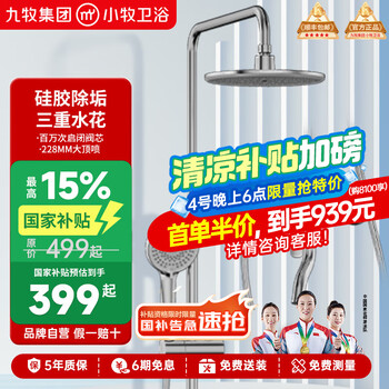 九牧(JOMOO)淋浴花洒全套装增压卫浴软管喷头除垢顶喷洗澡手持三重水花家用 2200镀铬丨硅胶除垢丨增压三水花