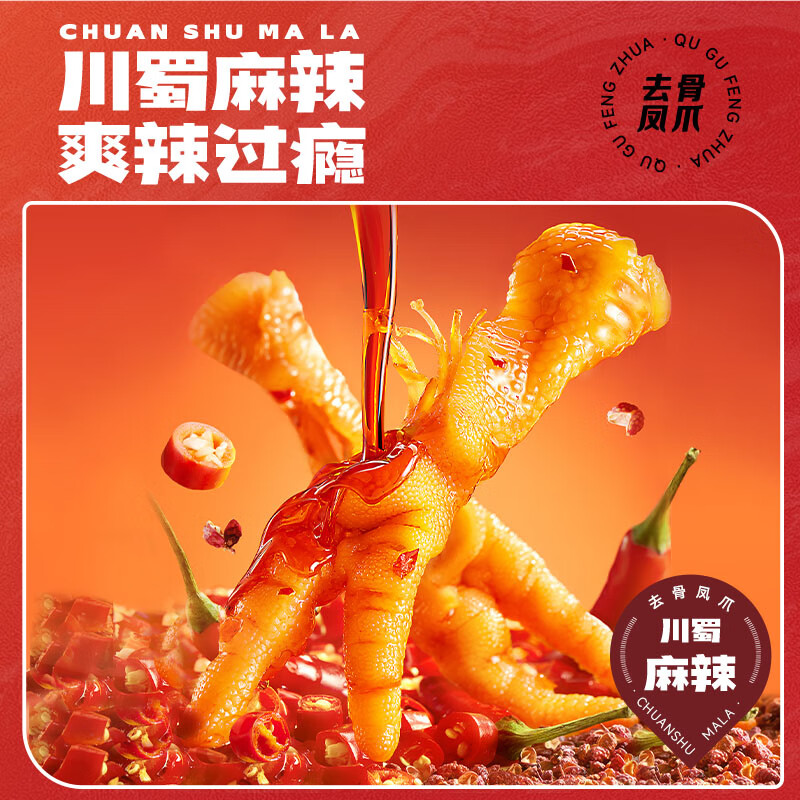 三只松鼠川辣味去骨鸡爪1000g 短保香辣无骨凤爪休闲零食即食源头直发包邮