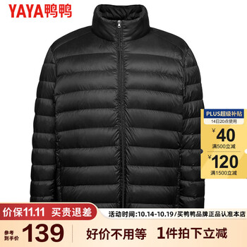 旗舰店鸭鸭(YAYA)轻薄羽绒服男短款立领修身轻型保暖运动帅气冬季外套潮KX 黑色 175/92A (L)