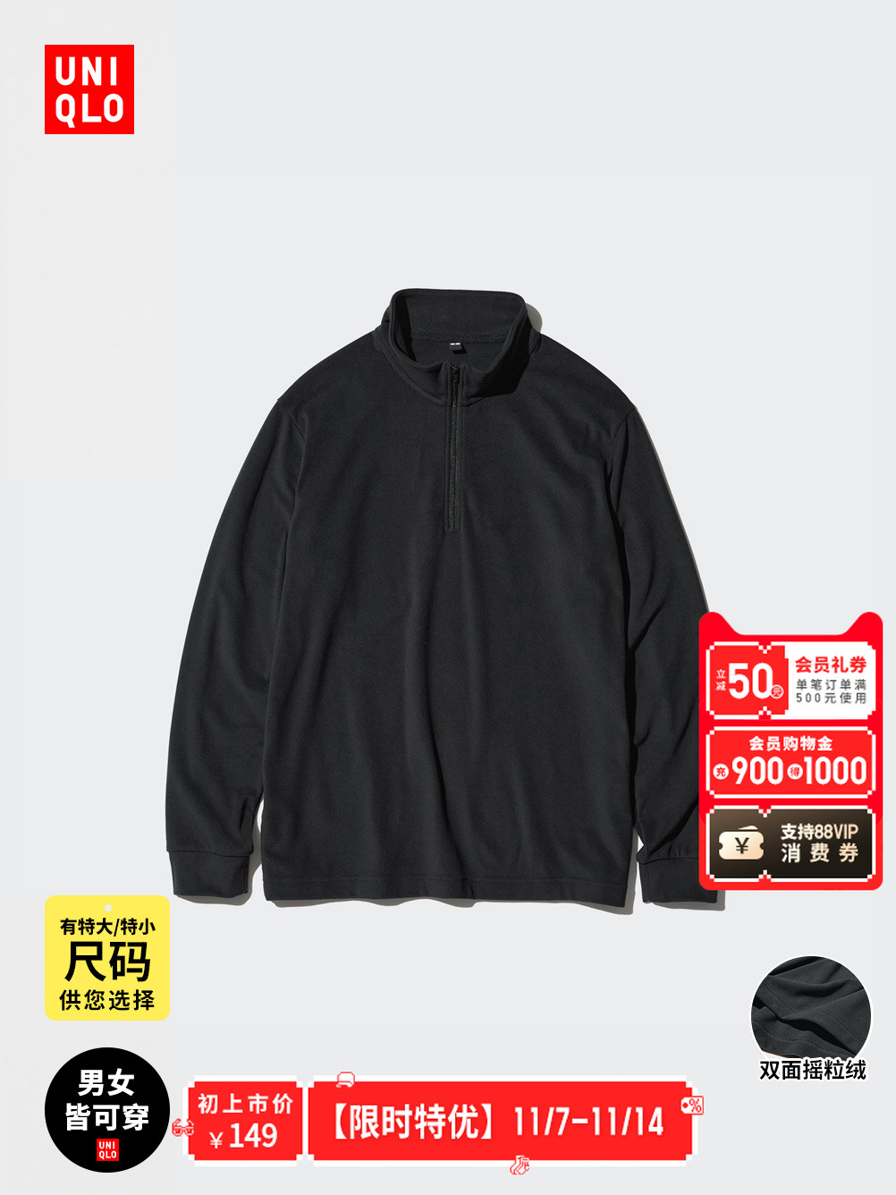 旗舰店优衣库男装柔滑弹力摇粒绒半拉链套头衫T恤保暖打底473141