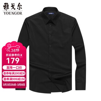 旗舰店雅戈尔(YOUNGOR)长袖衬衫男素色免烫抗皱衬衫棉涤面料抗皱平整易打理 GLCV179849AJY 黑色 39