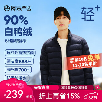 旗舰店网易严选【轻+7.0pro】90白鸭绒轻型羽绒服云感保暖抗菌可机洗防泼水新品 立领*绀宇蓝 L