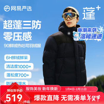 百亿补贴网易严选25新品90鸭绒超蓬羽绒服休闲面包服石墨烯保暖轻量抗菌防泼水 25秋冬连帽-静谧黑 L