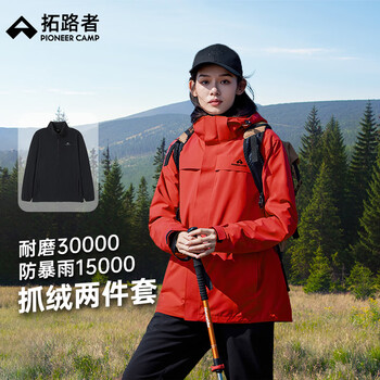 自营拓路者(Pioneer Camp)朱雀冲锋衣女三合一抓绒保暖外套户外登山服防水透气 朱雀红 M